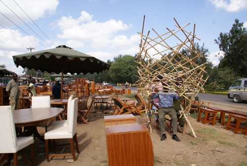 東明が家具ジュアカリ工房群の一角にて公開制作を行なった。完成した作品は東の帰国後も家具職人たちの休憩所として設置されたままとなった。